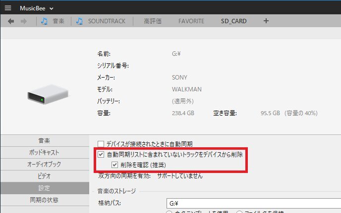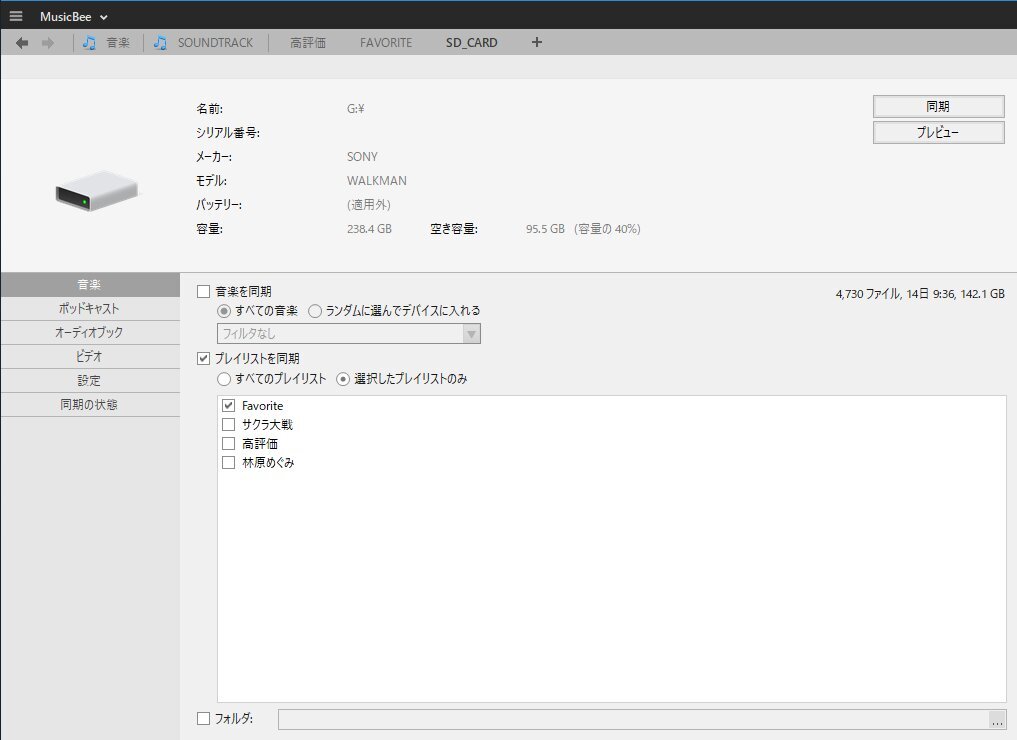 MusicBeeはMediaGo同様、曲再生用ソフトであると同時に音楽ファイルを同期する機能も持っています。