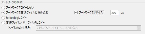 アートワークの格納欄で「アートワークをリサイズ」にチェックを入れておくと、自動的にアルバムアートのサイズが変更されて同期される。